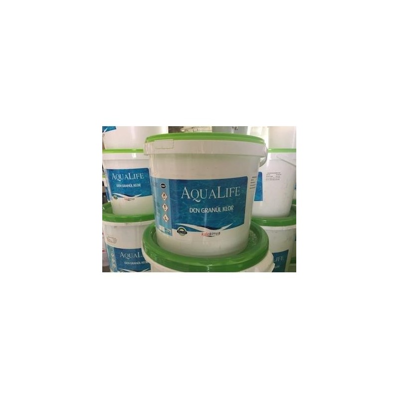 Aqualife Toz Havuz Klor %56 lık 50 lt - - - AQUALIFE DCN GRANUL TOZ KLOR %56 Kullanım Amacı Havuz suyu dezenfeksiyonu için çabuk çözünen stabil klor. Kullanım Talimatı Dozaj; günlük kullanım için 1-2 gr /m3, şok uygulamada 10 gr/m3. % 5-10'luk hazırl