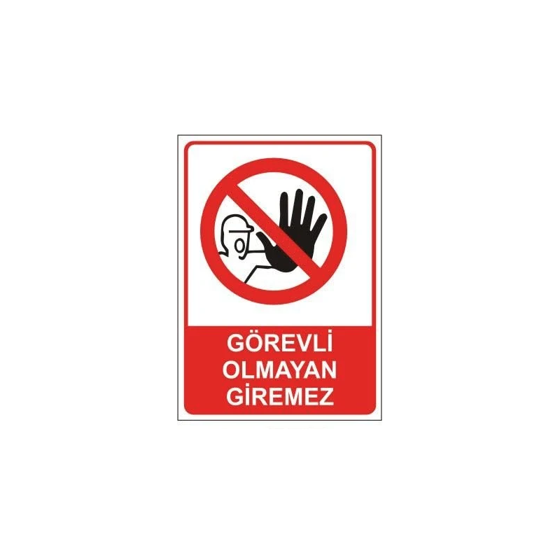 Görevliden Başkası Giremez Uyarı Levhası - - - İSG LEVHALARIMIZDA KULLANILAN MALZEME ÖZELLİKLERİPVC 0,50 mm (Plastik)Kaliteli PVC malzemeden dış mekan dijital veya serigraf baskı yapılmaktadır. PVC malzeme esnek ve kırılabilen malzemedir. Yuvarlak hatla